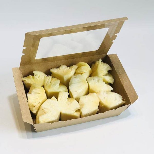 – Trọng lượng trái cây 1,2kg. Dùng được 5-6 khách.
