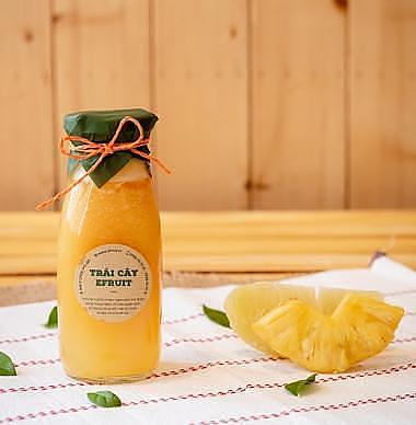 Nước ép chai Thủy tinh nguyên chất dung tích 310ml, được dung hòa 1-2% đường phèn tùy loại, dùng nguyên chất vẫn giữ nguyên thể tích và giá, có 2-3 viên đá giữ lạnh. Nước ép được ép tưoi hoàn toàn khi khách đặt, không ép trước.